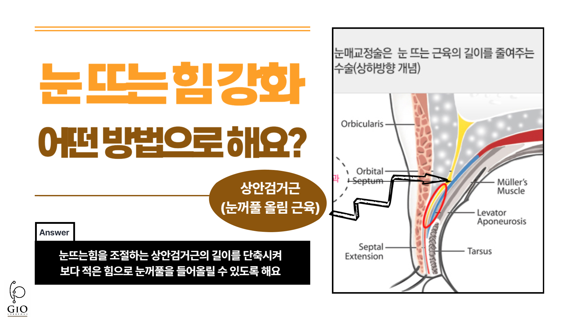 - 상안검거근의 길이가 과도하게 단축된 과교정