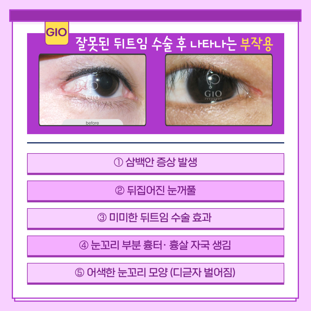 위 사진은 뒤트임 후기 중 간혹서 나타나는