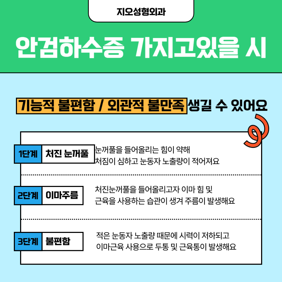 방치할 시 깊은 이마주름, 적은 눈동자 노출량으로 인한