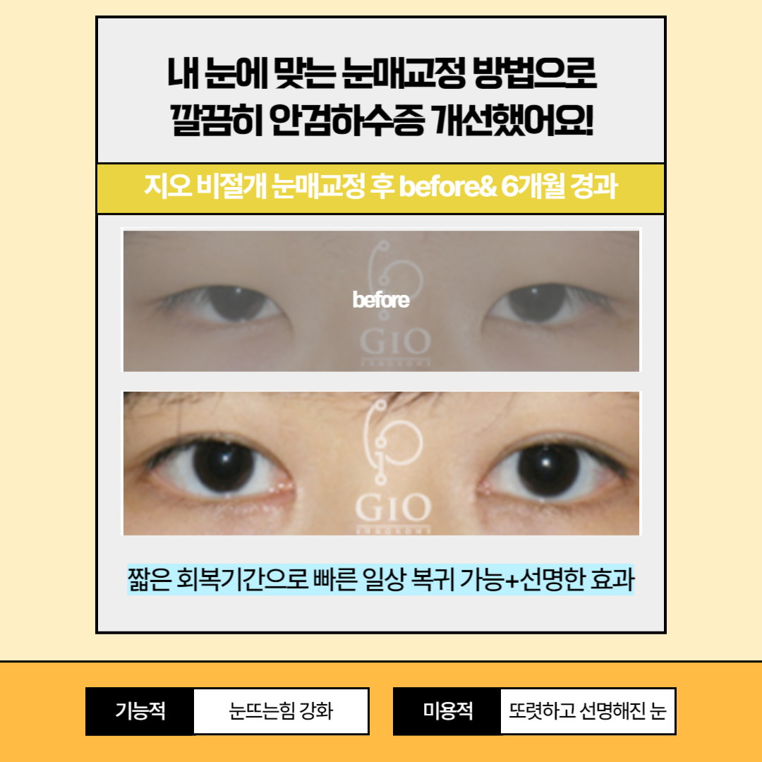 위 사례는 지오 비절개 눈매교정 집도 받은 사례로