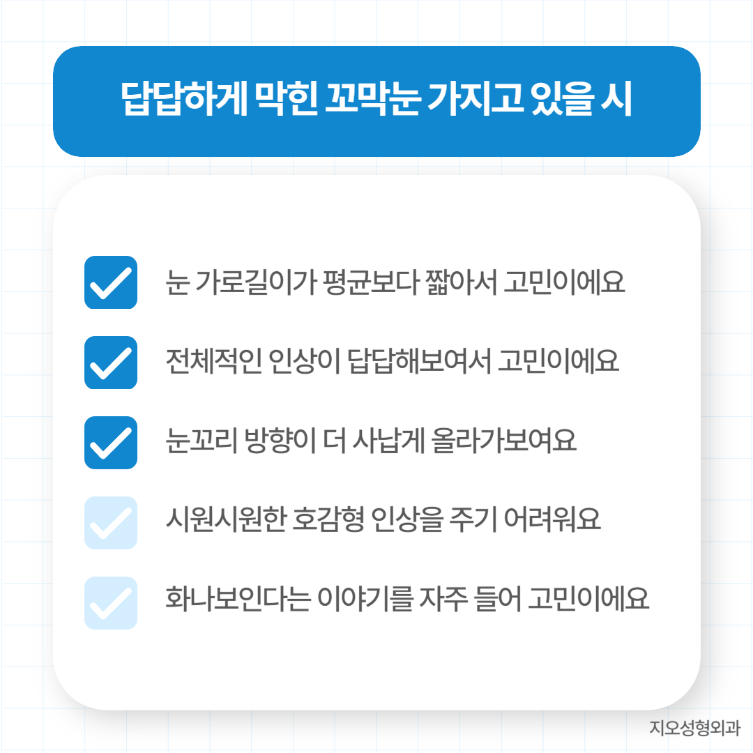 눈 가로길이 평균 이상으로 짧은 편이라면