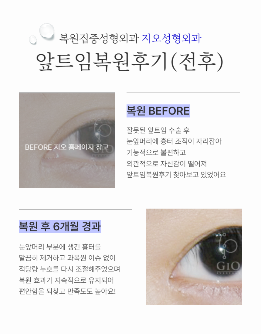 지오를 통해 집도된 다양한 앞트임복원후기 사례