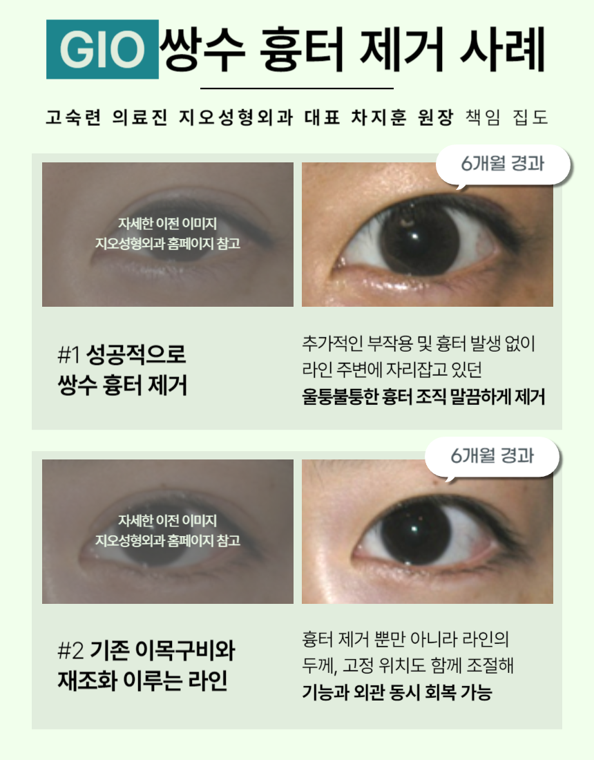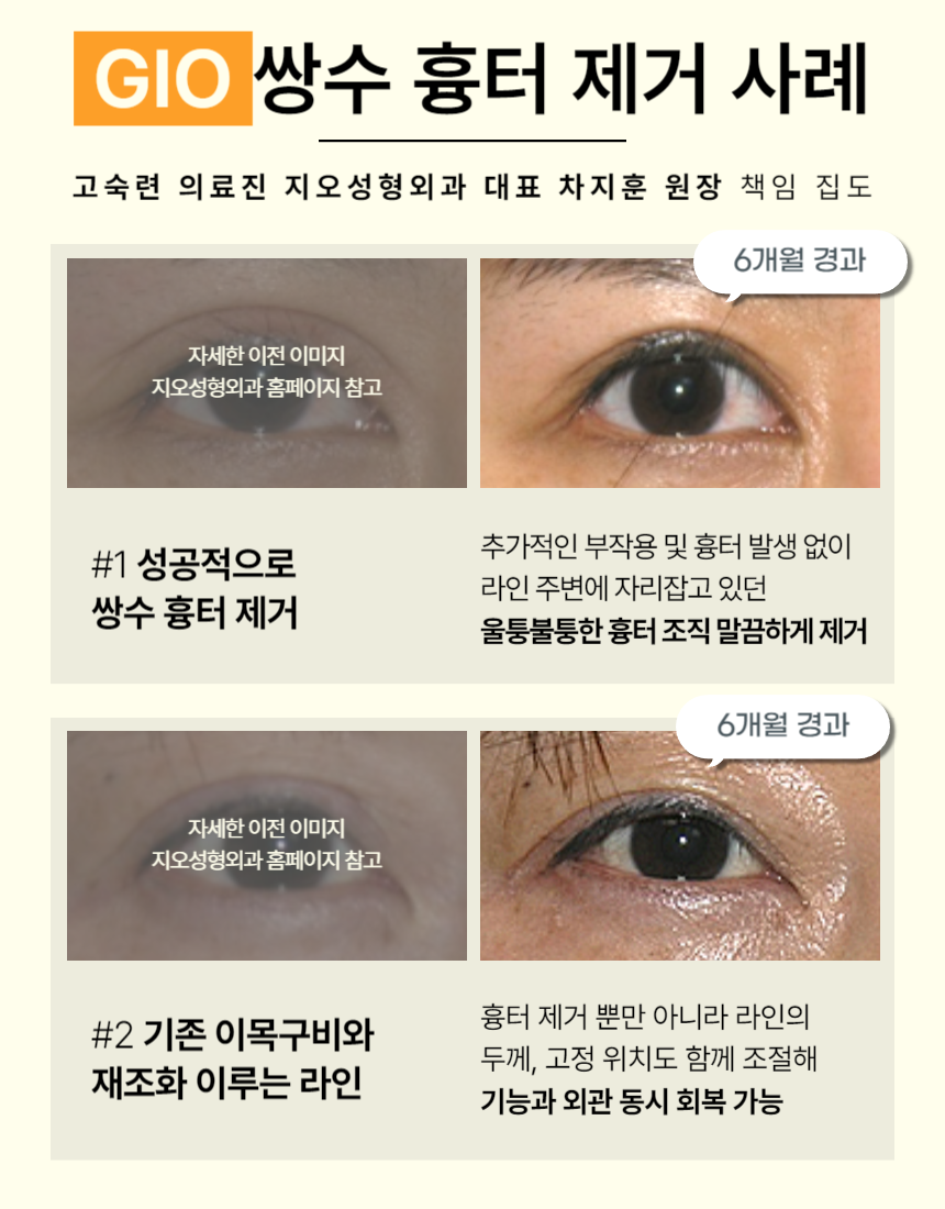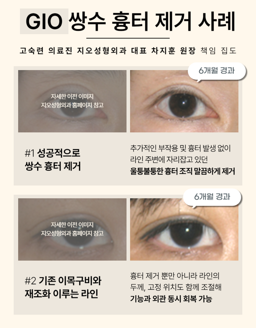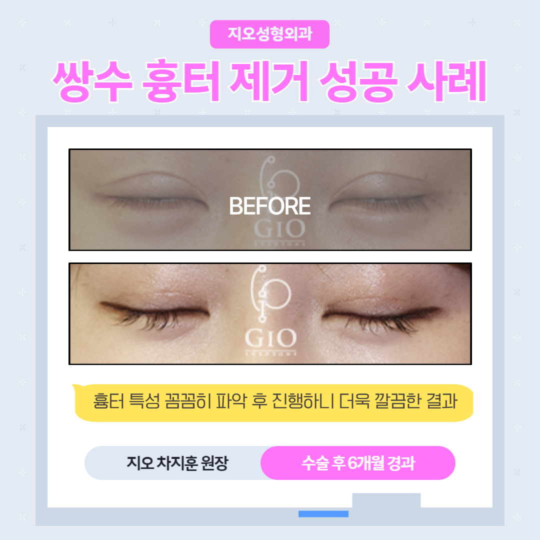 위 사례는 이전 수술 후 쌍수 절개 흉터 깊이 자리잡아