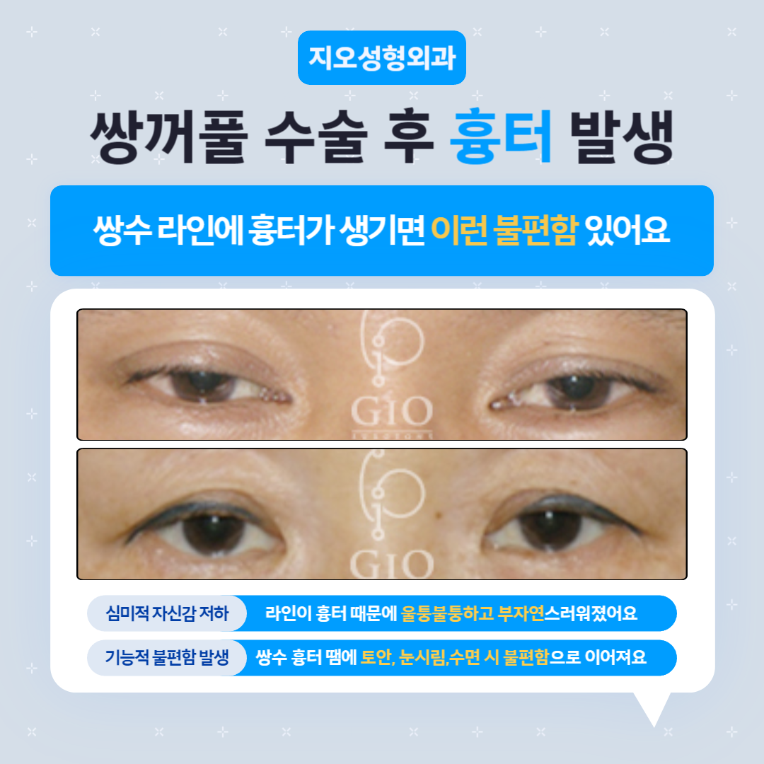 회복하는 증상으로서 쌍수 절개 흉터 도드라질 수 있지만