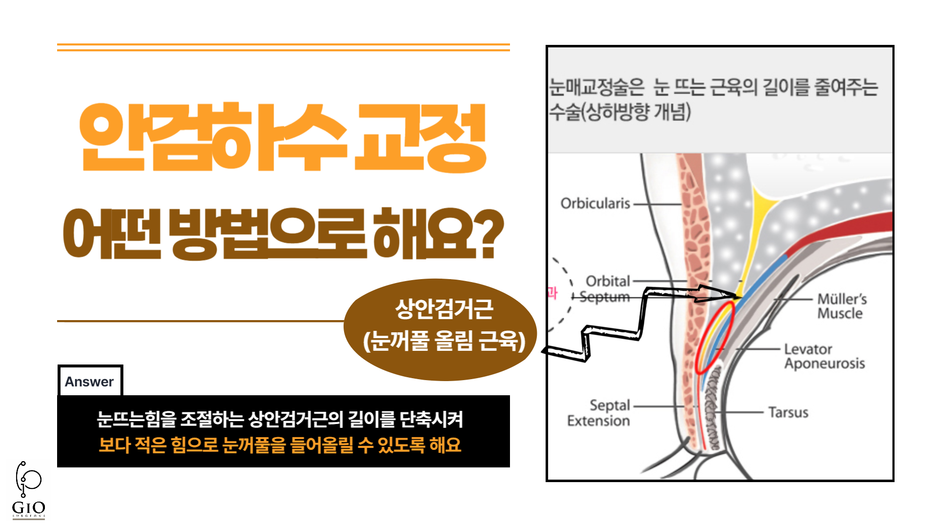 안건하수 치료 과정은 눈을 뜨는 근육, 즉 상안검거근의