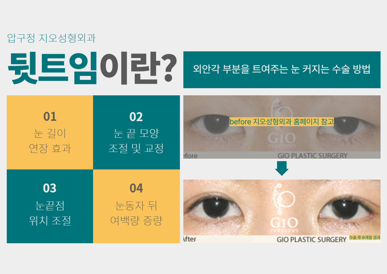 뒷트임 방식은 눈끝점의 위치를 옮겨줄 수 있어 밑트임 효과를 포함하고 있습니다.