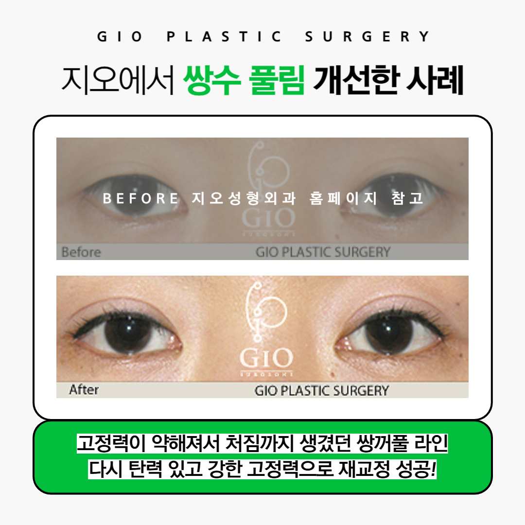 위 사진은 지오성형외과에서 쌍꺼풀수술 풀림 증상