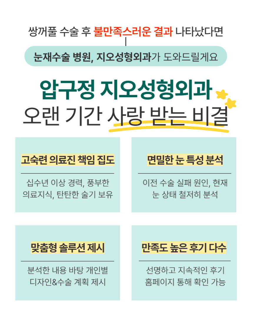 지오성형외과는 십수년 이상 쌍꺼풀푸는수술 포함해