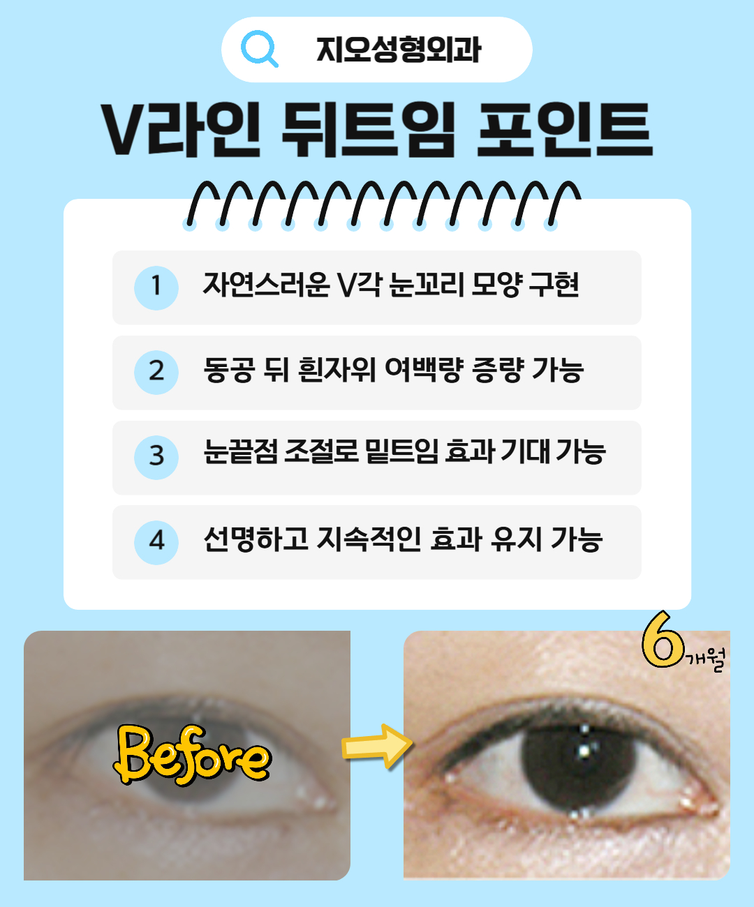 V라인 뒤트임은 눈꼬리 끝을 V자로 절개하여 눈끝점의