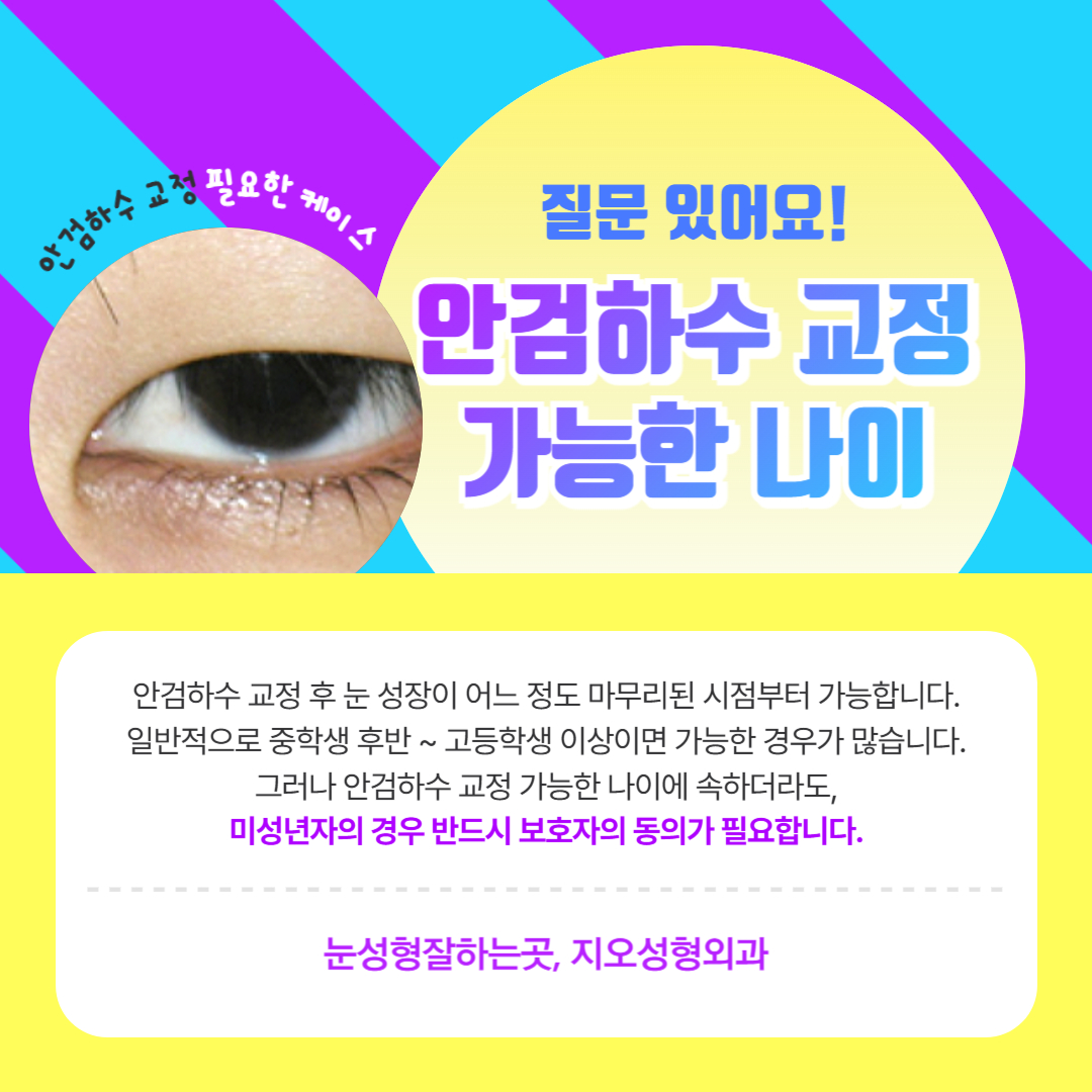 하지만 안검하수 교정 가능한 나이에 속하더라도,