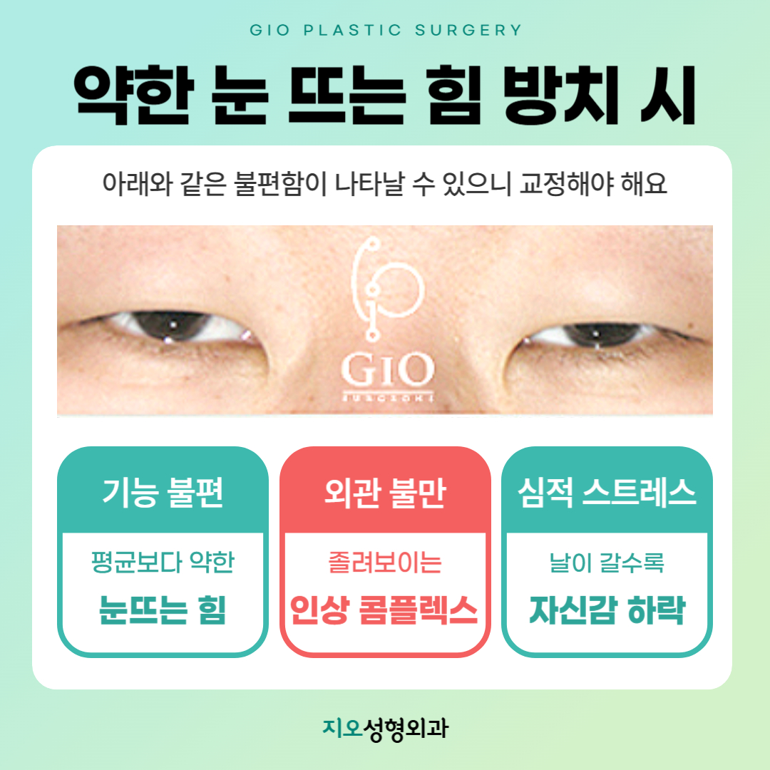 눈 뜨는 힘, 즉 상안검거근의 기능 저하에서 비롯되며,
